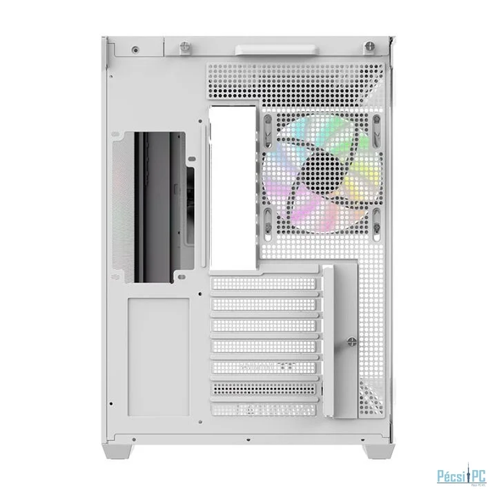 ATX, White, 1x3,5", 2x2,5", 2xUSB3.0, 1xUSB Type-C, Audio, Táp nélkül, 447x411x285mm, Ventilátor:4x12cm, Tempered glass window