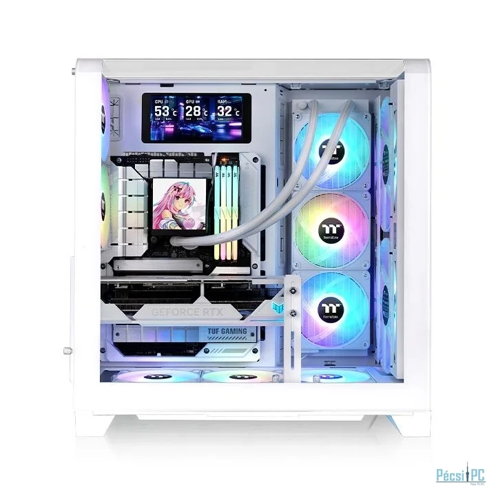 ATX, White, 2x3,5", 3x2,5", 2xUSB3.0, 1xUSB Type-C, Audio, Táp nélkül, 503x287x485mm, Tempered glass window, Gamer