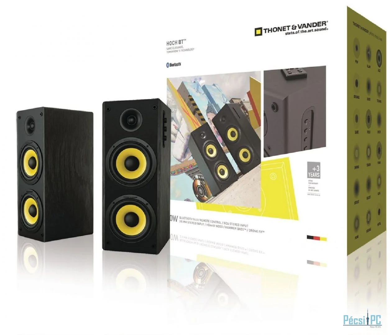 2.0, 70W, 2xRCA, 3,5mm jack, Bluetooth, Távirányító, 50Hz-20kHz, HDAA Box, Black
