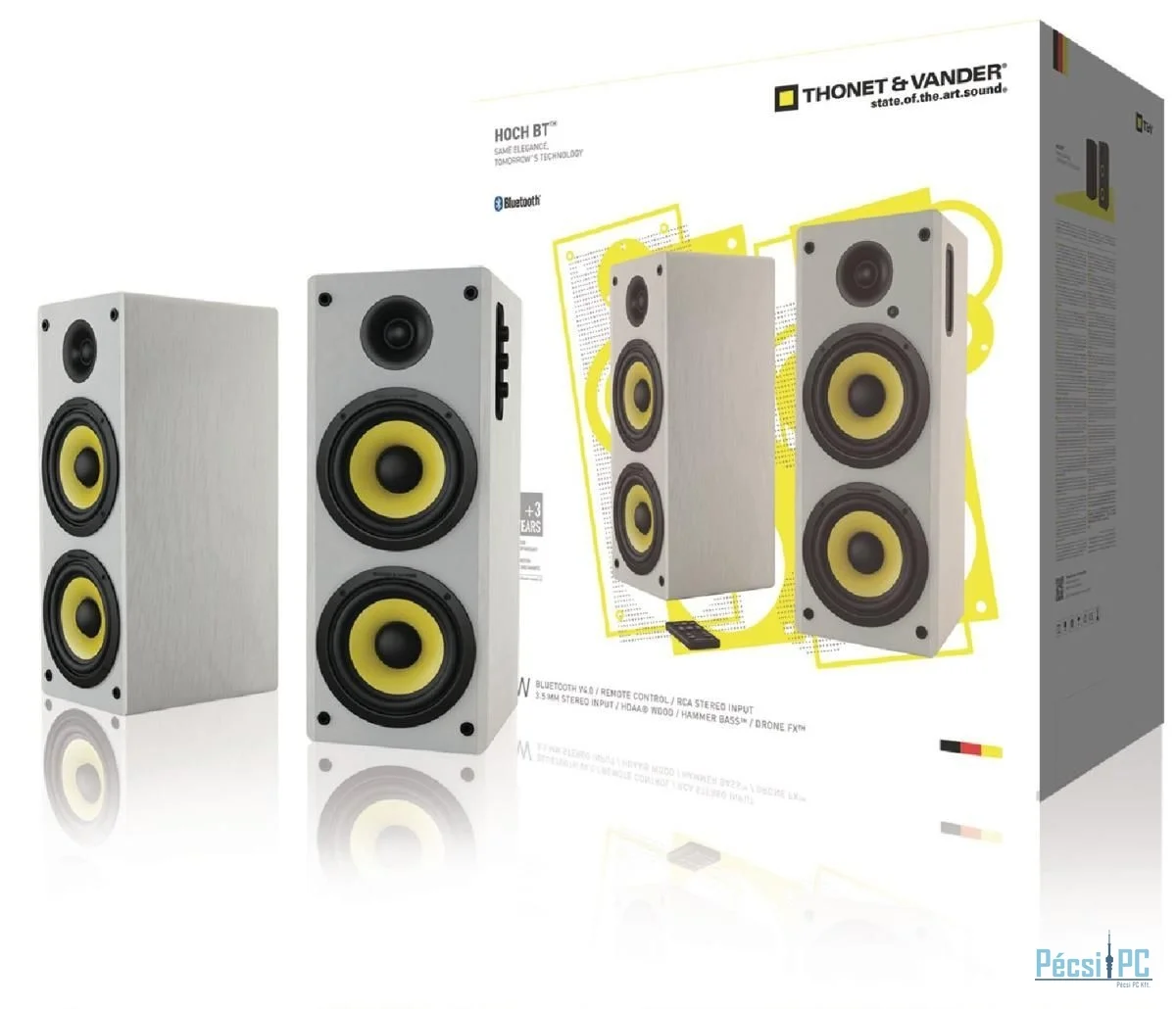 2.0, 70W, 2xRCA, 3,5mm jack, Bluetooth, Távirányító, 50Hz-20kHz, HDAA Box, White