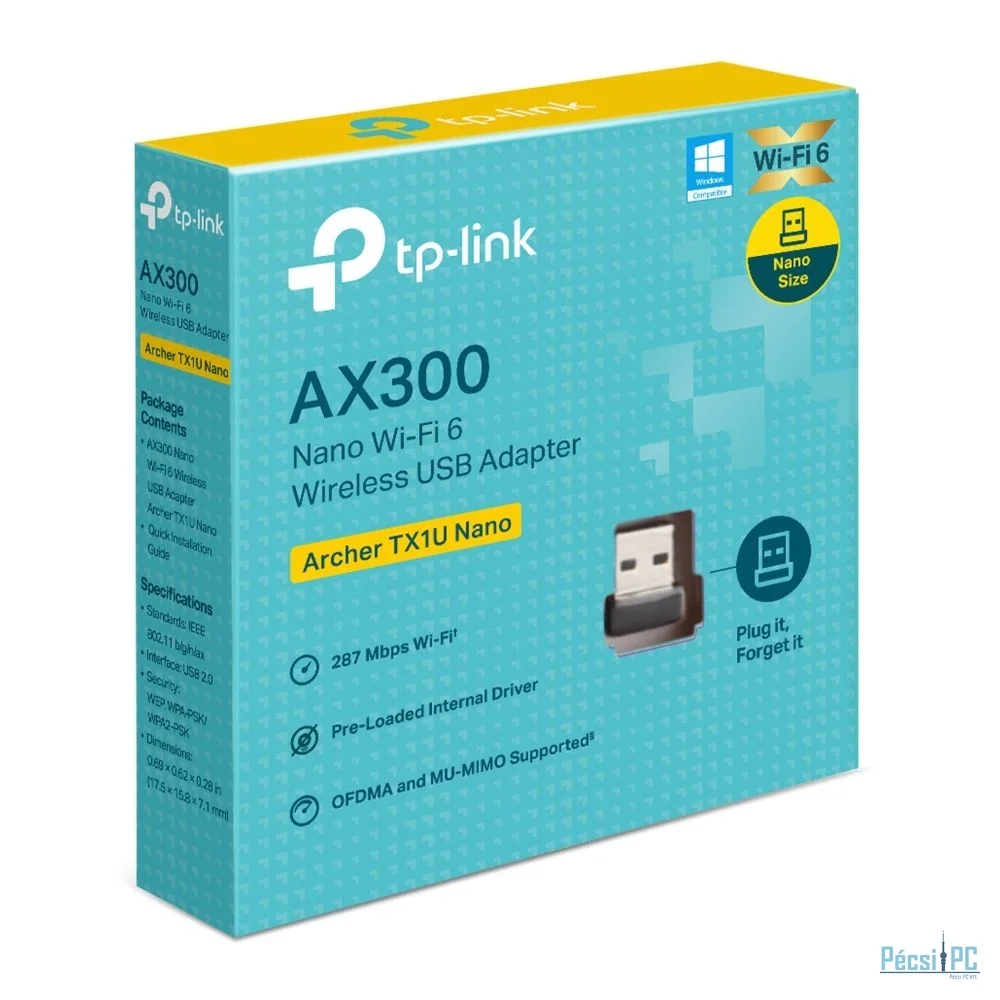 Villámgyors, szilárd kapcsolatok - A Wi-Fi 6 technológiát kihasználva akár 287 Mbps sebességű, villámgyors sebességet érhet el a hibátlan webböngészéshez, azonnali e-mail válaszokhoz és zökkenőmentes közösségi média megosztáshoz. Kompakt és hordozható - Nano-méretű (0,69×0,62×0,28 hüvelyk) a villámgyors vezeték nélküli kapcsolatért - tökéletes utazáshoz és távmunkához. Egyszerű telepítés - Előre feltöltött belső meghajtóval rendelkezik az azonnali csatlakoztathatósághoz, kiküszöbölve a fárasztó folyamatokat, és lehetővé téve az egyszerű, problémamentes csatlakoztatást. Zökkenőmentesebb online élmény - MU-MIMO routerekkel működik, amelyek egyidejű adatfolyamokat biztosítanak, növelve az átviteli sebességet és a hatékonyságot. Zökkenőmentes Wi-Fi hotspot-megosztás - Az AP mód kihasználásával eszközét robusztus Wi-Fi hotspottá alakíthatja, kényelmesen biztosítva a gyors internet-hozzáférést számos kapcsolat számára. Széles körű kompatibilitás - A támogatott operációs rendszerek közé tartozik a Windows (11/10/7) és a Linux (Kemel 3.10 és újabb).