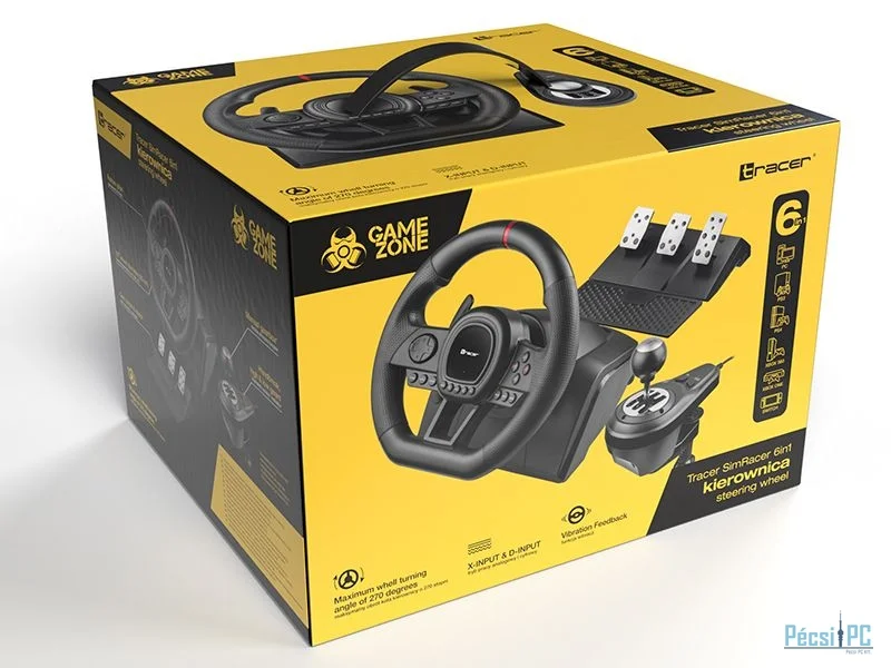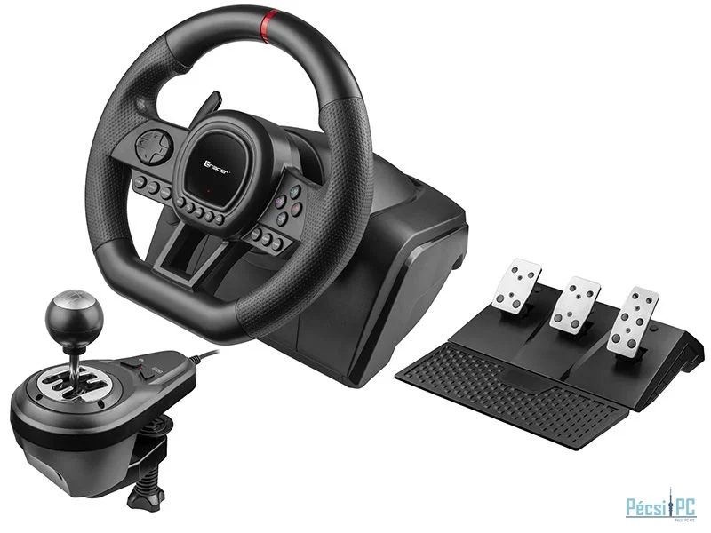 Kormány/pedál szett, PC/PS3/PS4/XBOX 360/XBOX ONE/Nintendo Switch, USB, Sebességváltó modul, Három pedálos, Vibrációs funkció