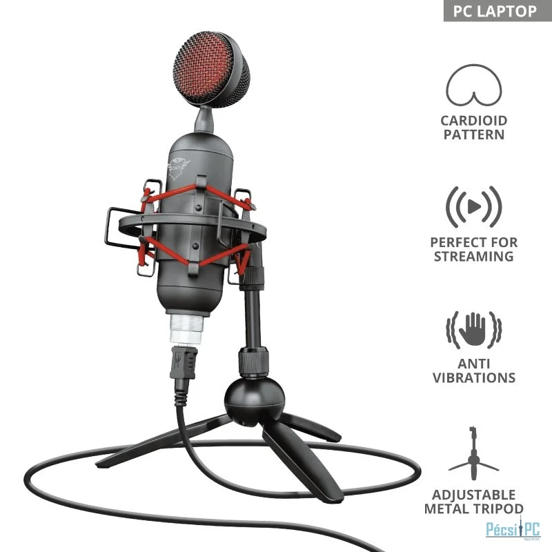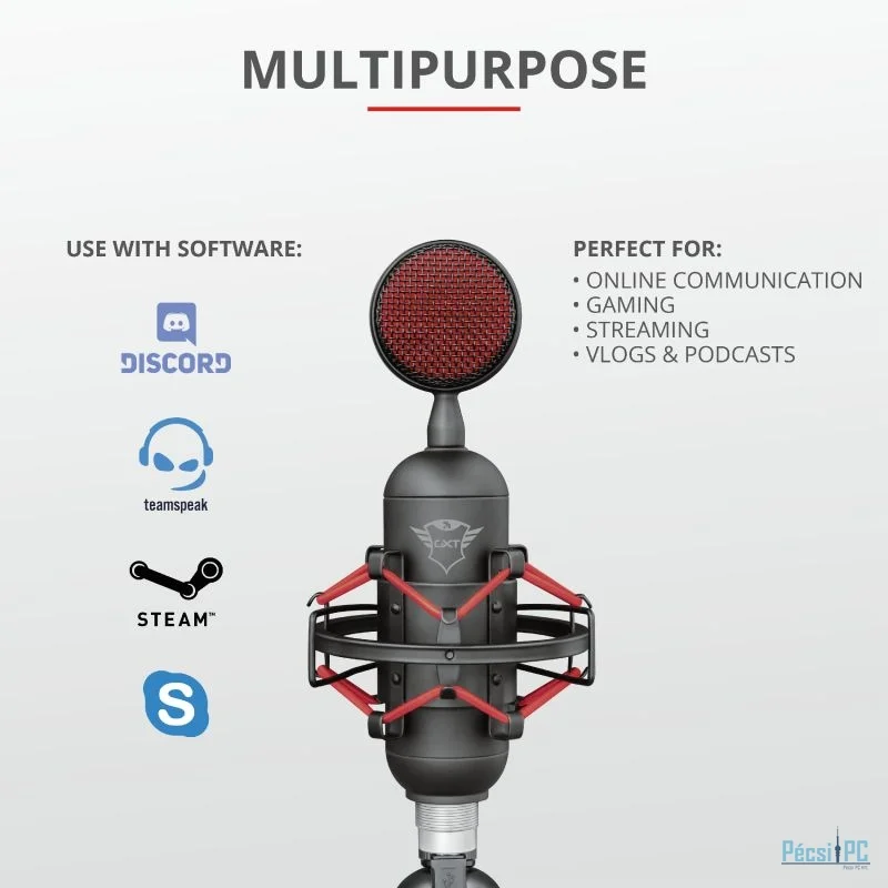 Mikrofon, USB, Kábel:1,8m, 30Hz-18kHz, Black