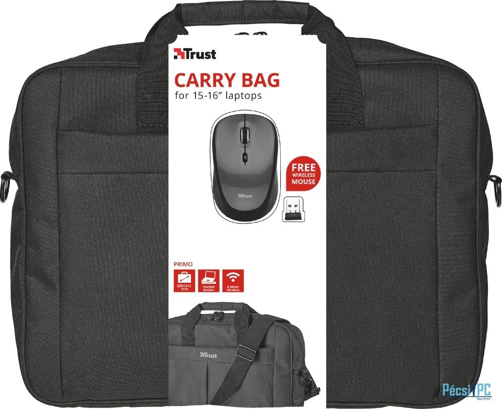 Trust Primo 16" Carry bag Black with wireless mouse