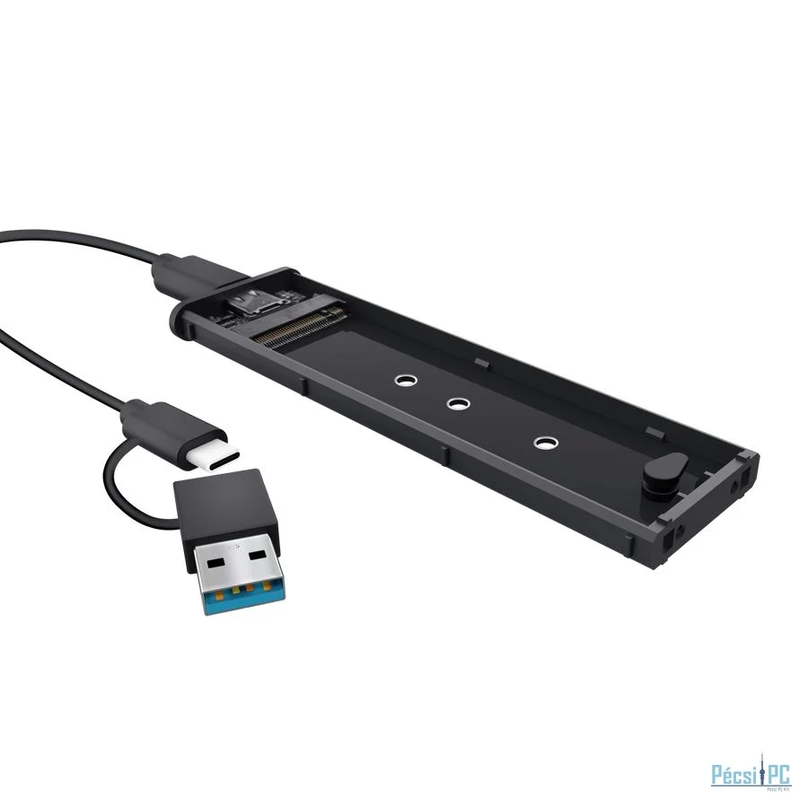Hordozható, M.2, M.2, Type-C, USB3.2, NVMe, Műanyag, Passzív, Black
