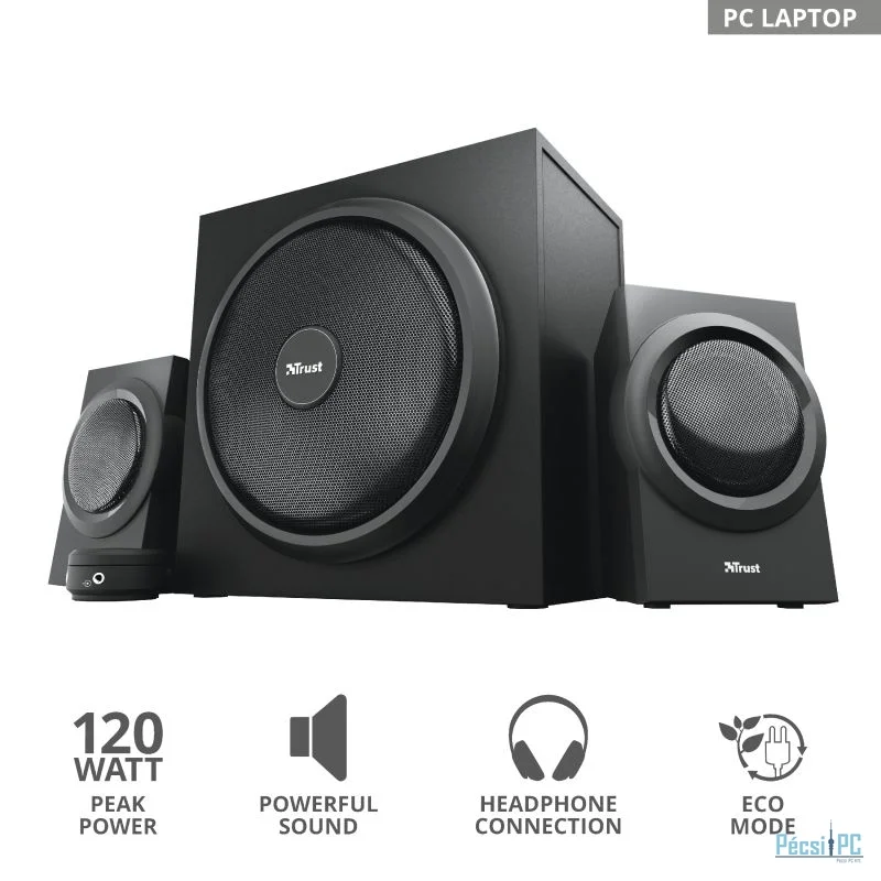 2.1, 60W, 2xRCA, 3,5mm jack, 20Hz-20kHz, Black
