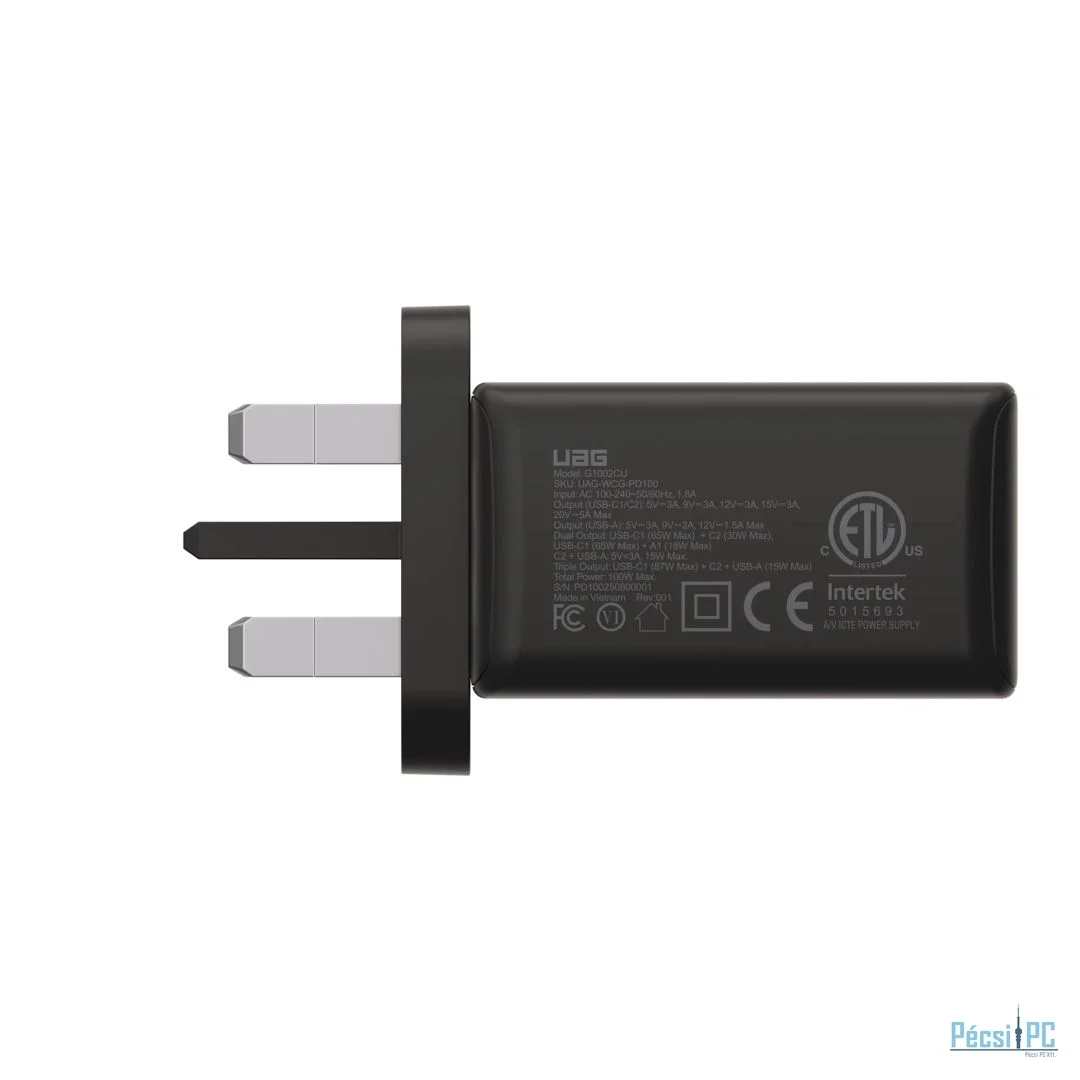 UAG 100W 3Port ((2)USB-C, (1)USB-A) Wall Charger Black