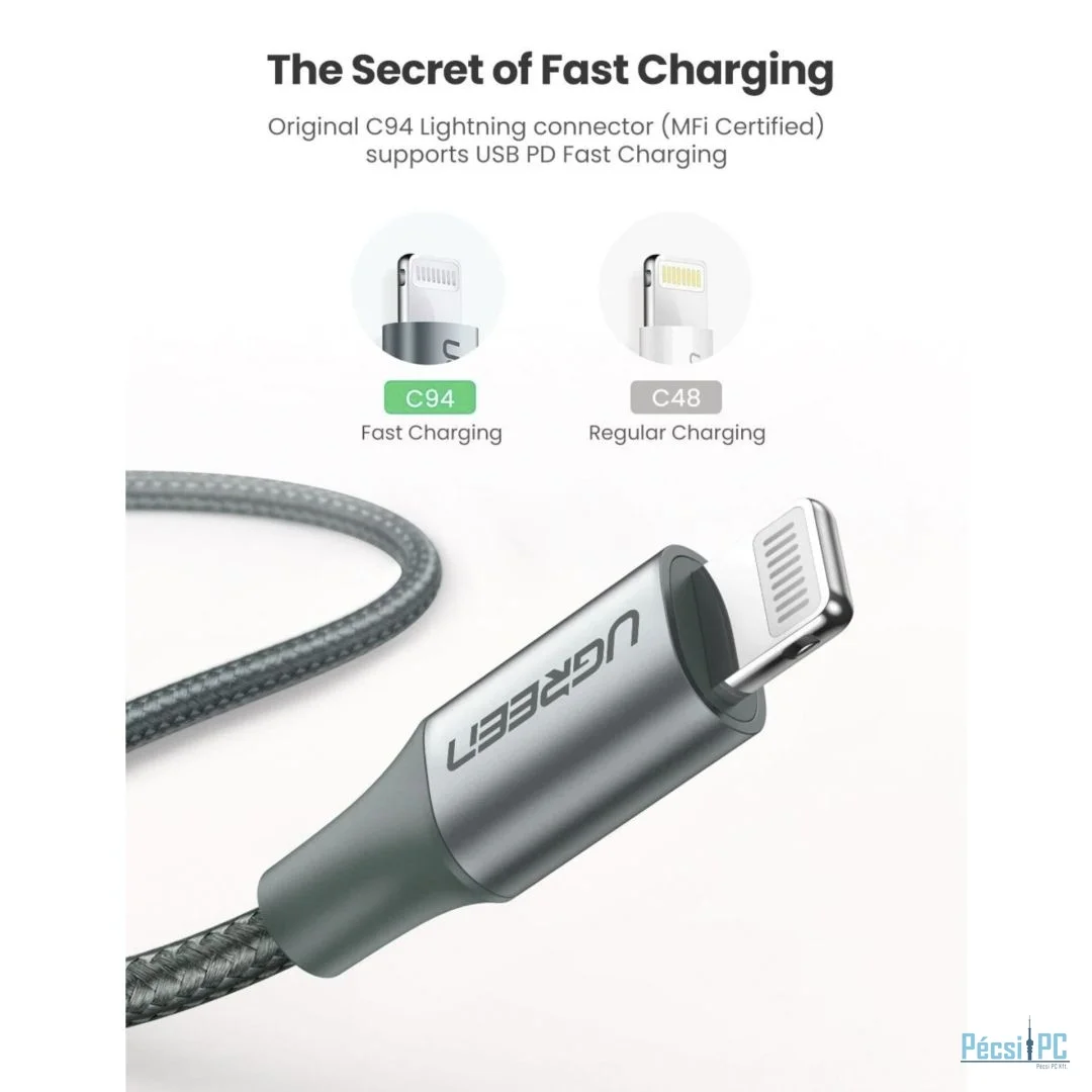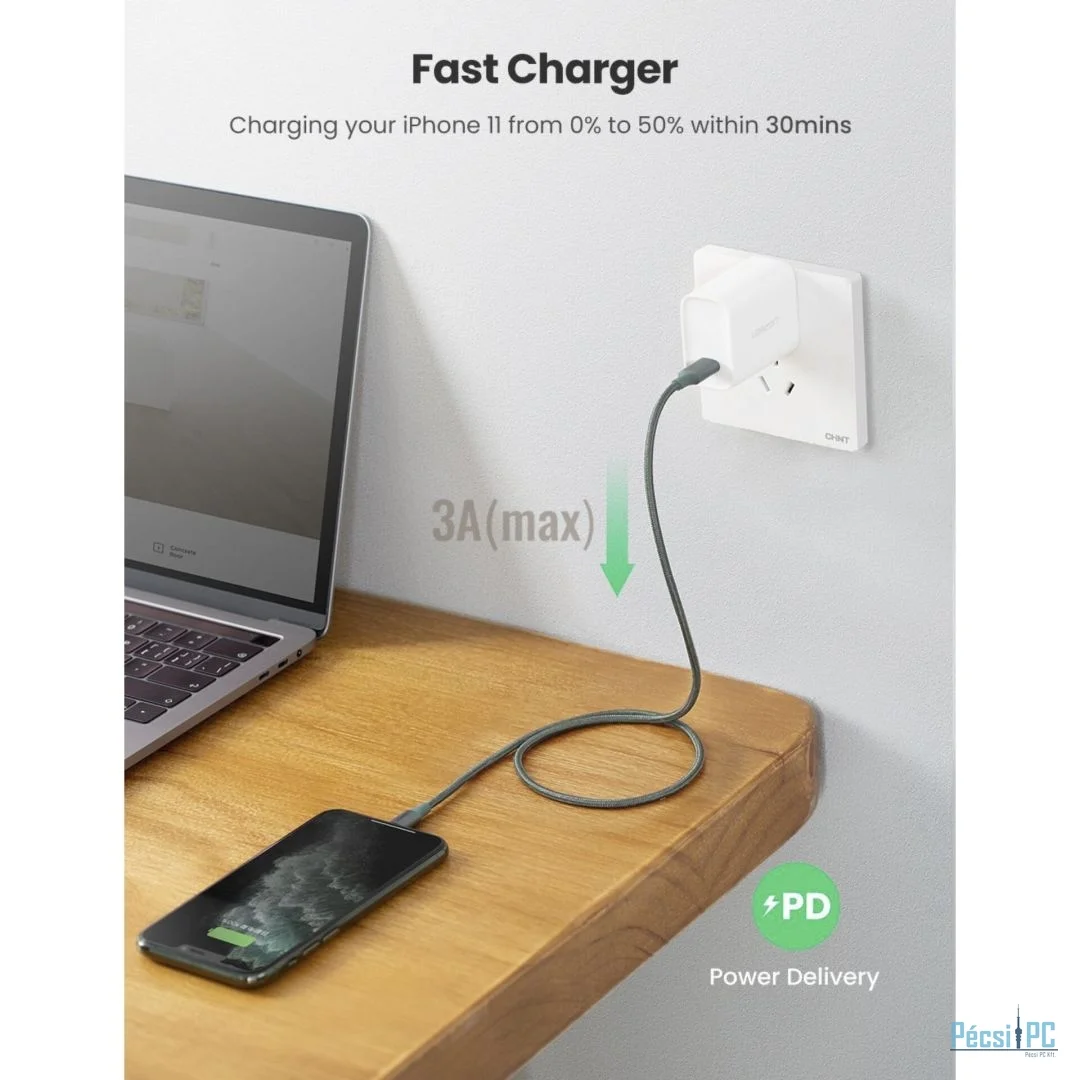 USB kábel, USB-C, Lightning, USB2.0, Male/Male, 1m, Black, Töltő és adatkábel