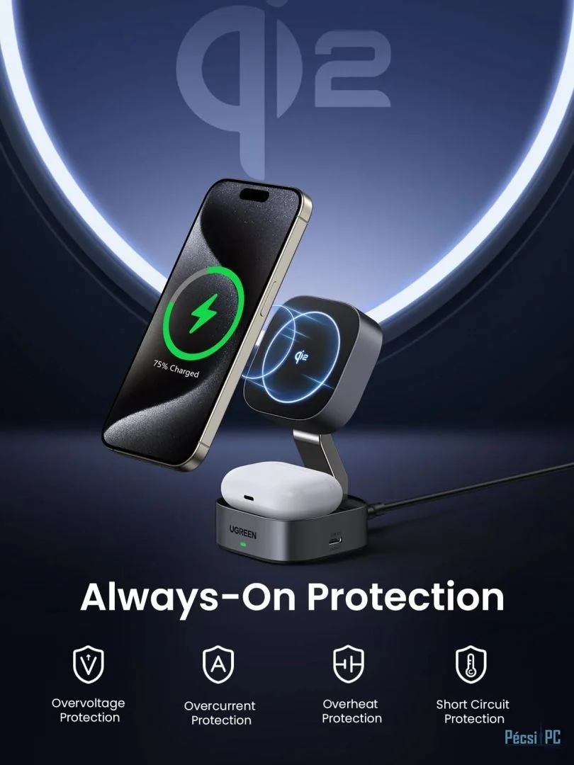 UGREEN Qi2 15W MagFlow 2-in-1 Wireless Charger Grey