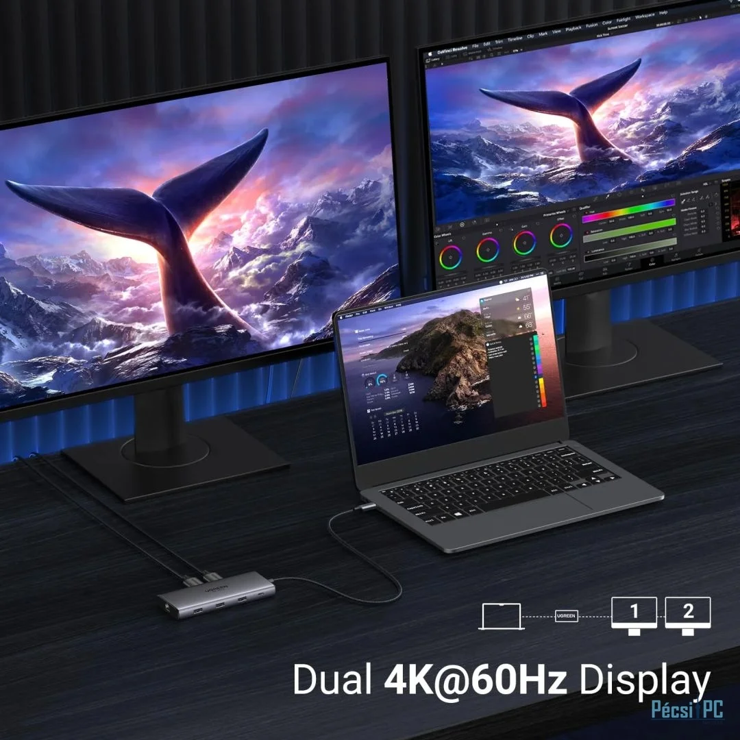 UGREEN Revodok Pro 210 10-in-1 USB-C Hub (Dual HDMI 4K@60Hz, 100W PD) Grey