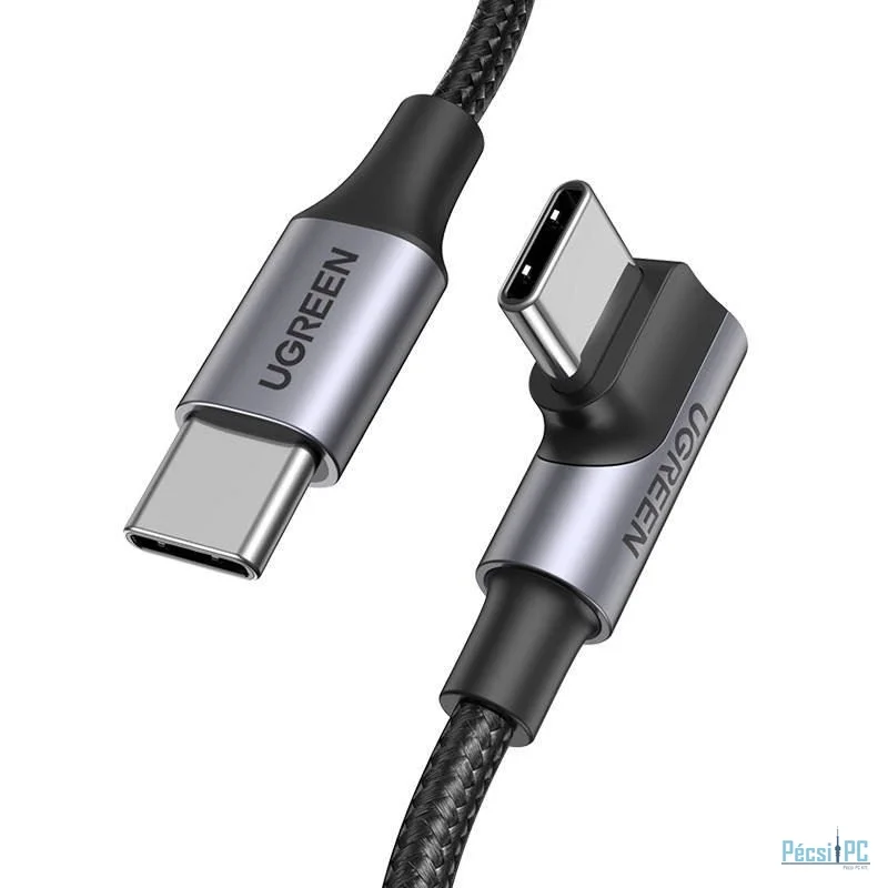 USB kábel, USB-C, USB-C, Male/Male, 1m, Black, Töltő és adatkábel, 90 fokos, Szövetborítás