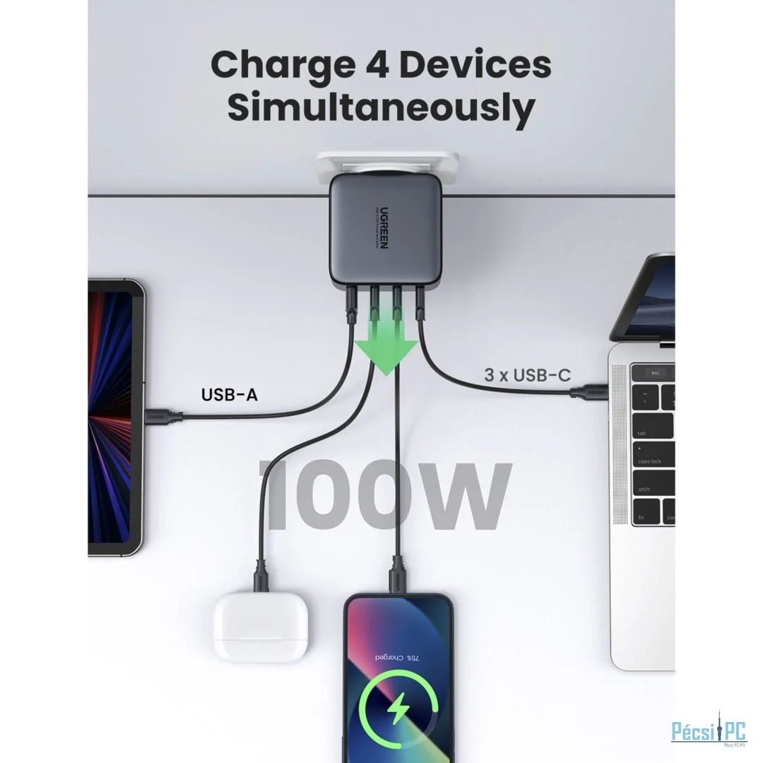 UGREEN USB-A+3xUSB-C 100W GaN Tech Fast Wall Charger EU Black