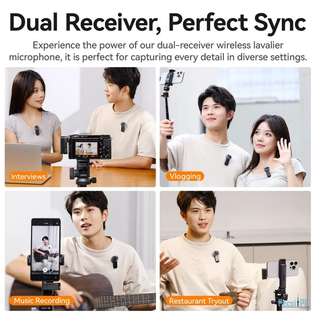 Az Ulanzi A100 vezeték nélküli lavalier mikrofon egy kompakt, sokoldalú és professzionális hangrögzítési megoldás, amely ideális tartalomkészítők, vloggerek, interjúkészítők és élő közvetítések számára. Kristálytiszta hangminőséget biztosít, miközben egyszerű és gyors csatlakozást kínál különböző eszközökhöz.