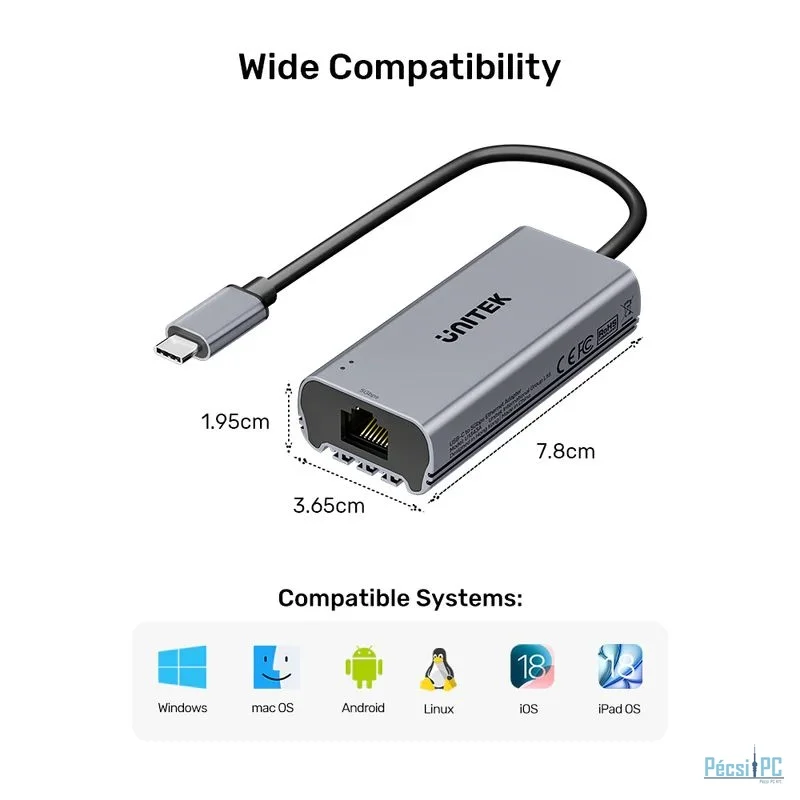 Külső, USB-C, 1xLAN port , LAN sebesség 2,5 Gigabit