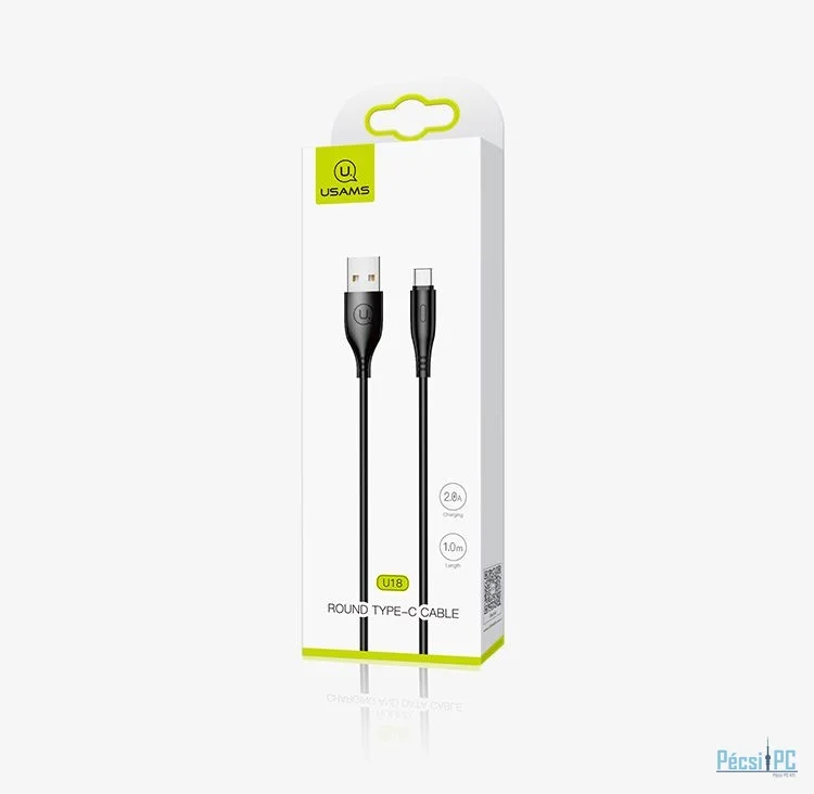 USB kábel, USB-A, USB-C, USB2.0, Male/Male, 1m, Black, Töltő és adatkábel