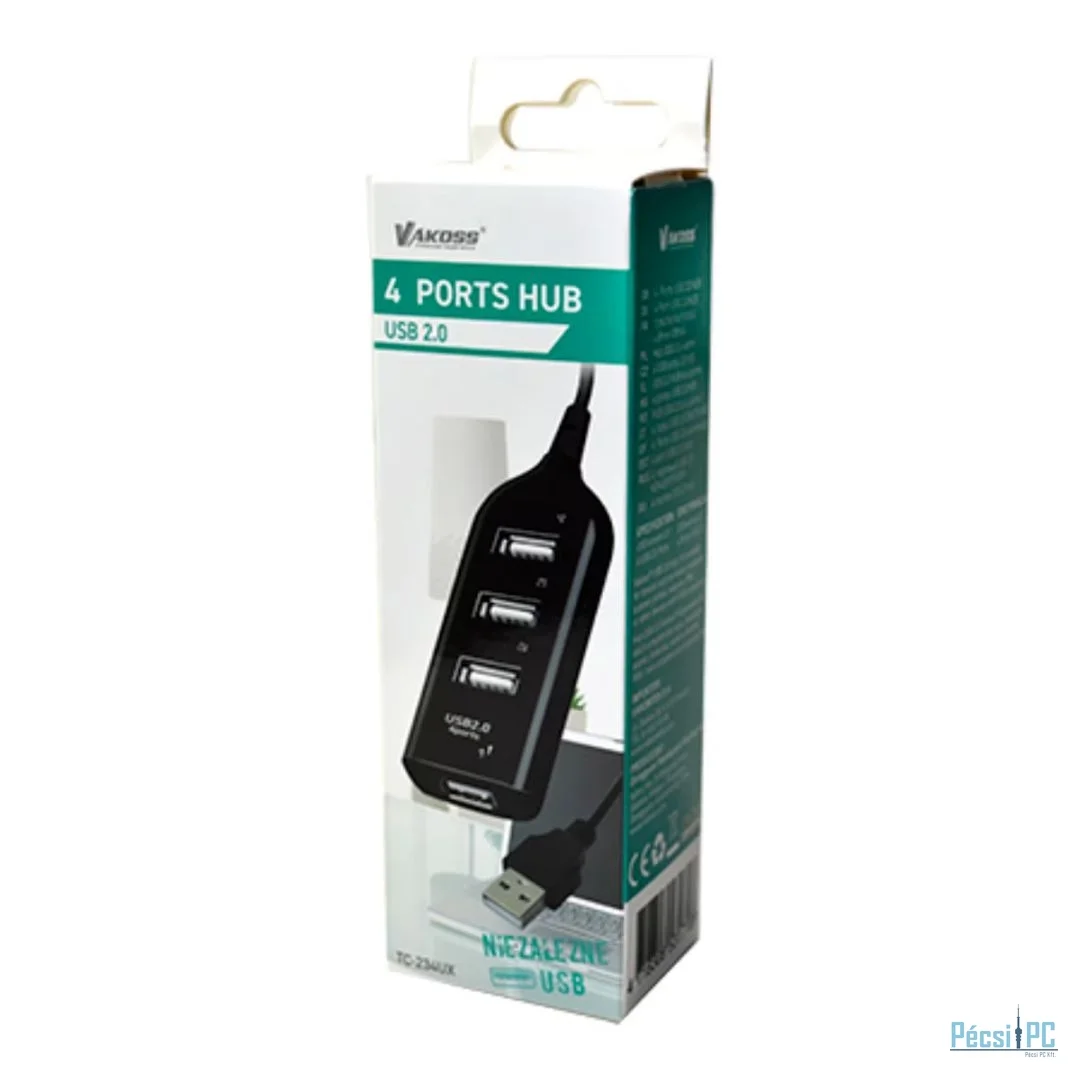 Vakoss TC-234UX 4-portos USB2.0 HUB Black