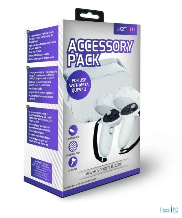 Védd meg a Meta Quest 2 VR-fejhallgatód és kontrollereid a kopástól, izzadtságtól és szennyeződésektől ezzel a kényelmes és praktikus szilikon védő kiegészítő csomaggal! Az exkluzív tartozékcsomag magában foglalja a headset borítását, arcvédőt, két vezérlőborítást és két gumiszalagot a joystickokhoz, mindazt, amire szükséged van a VR-felszerelésed optimális állapotban tartásához és egy higiénikusabb, kényelmesebb VR-élményhez.