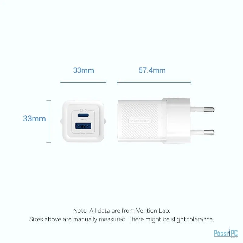 Adapter, 1xUSB-A, 1xUSB-C, 5V/9V/12V/15V/20V, 3A, 30W, QC, PD, White