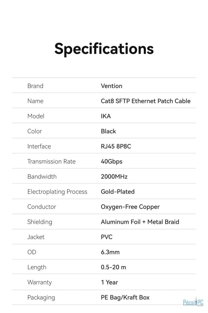 Vention CAT8 S-FTP Patch Cable 1m Black