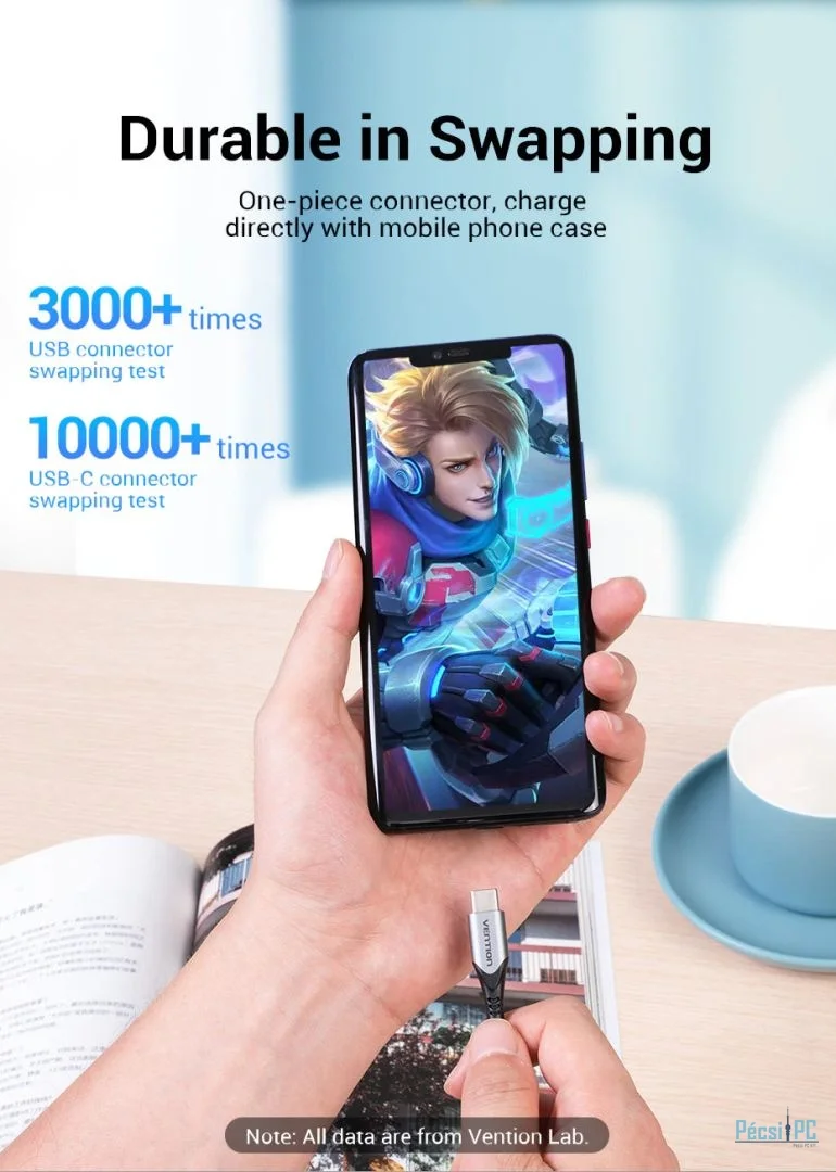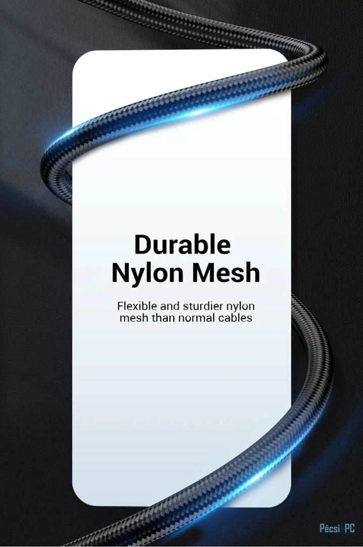 USB kábel, USB-A, USB-C, USB2.0, Male/Male, 1m, Grey, Töltő és adatkábel, Szövetborítás