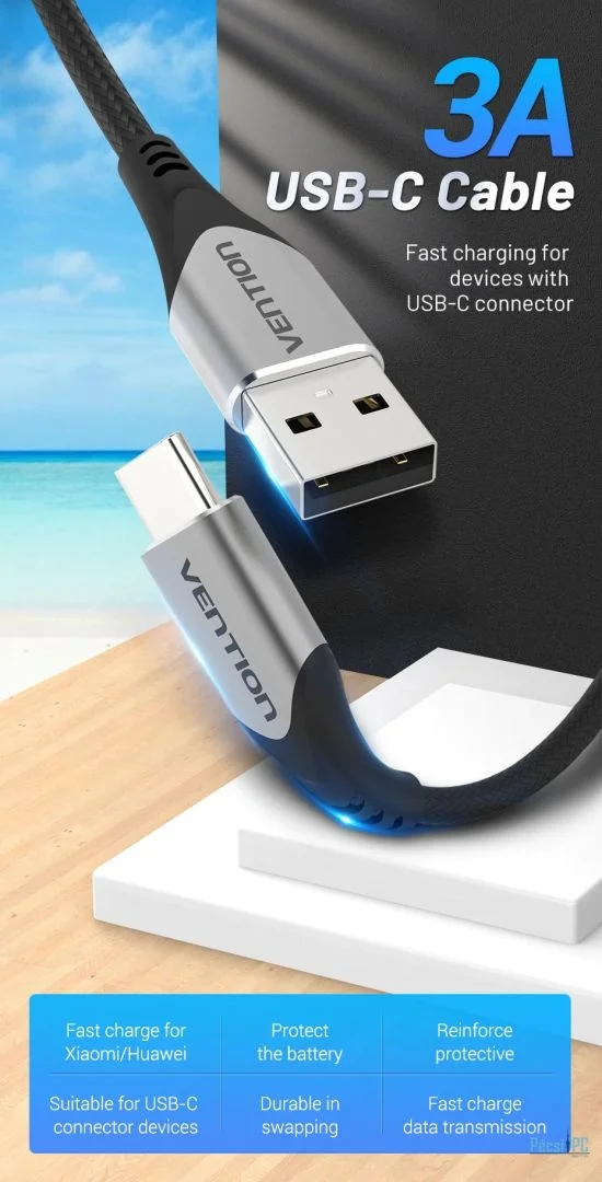 Vention Cotton Braided USB 2.0 A Male to C Male 3A Cable 2m Gray