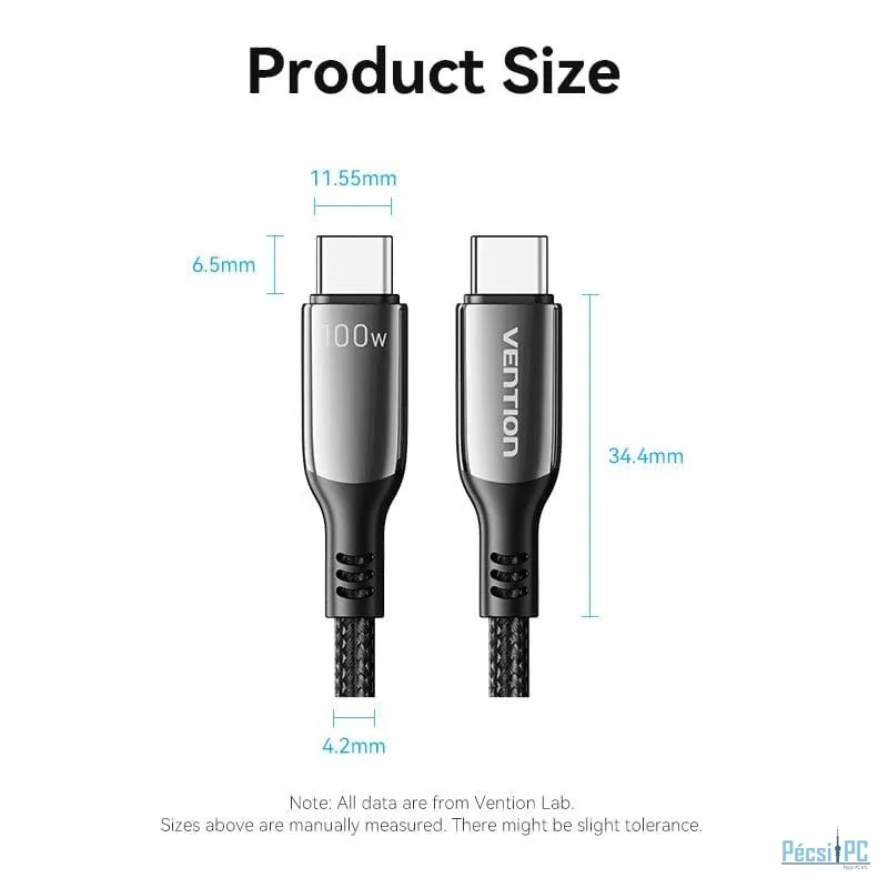 Vention Cotton Braided USB 2.0 C Male to C Male 5A Zinc Alloy Type cable 2m Black