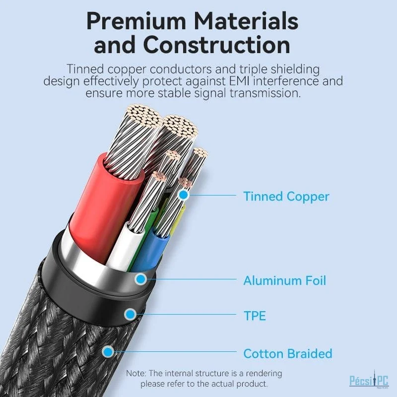 USB kábel, USB-C, USB-C, USB2.0, Male/Male, 2m, Black, Töltő és adatkábel, Szövetborítás