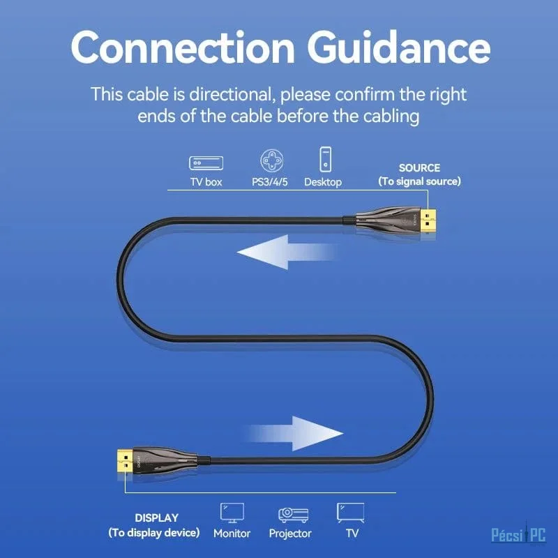 Videó kábel, DisplayPort, DisplayPort, Ultra HD 8K, Male/Male, 5m, Black