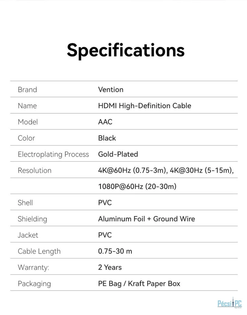 Vention HDMI 4K@60Hz cable 20m Black