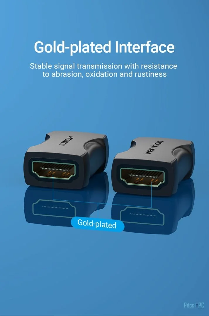 Minimális jelcsillapítás: A Vention HDMI csatoló PVC-héjjal, fém árnyékoló réteggel és aranyozott csapokkal készült a jelveszteség és a csillapítás minimalizálása érdekében. Ez a fejlett kialakítás garantálja a gördülékeny és következetes átvitelt, megőrizve az audio- és videojelek integritását nagyobb távolságokon keresztül.