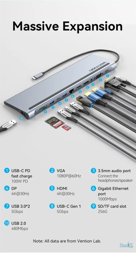 Vention Multi-function 12-in-1 USB-C Docking Station