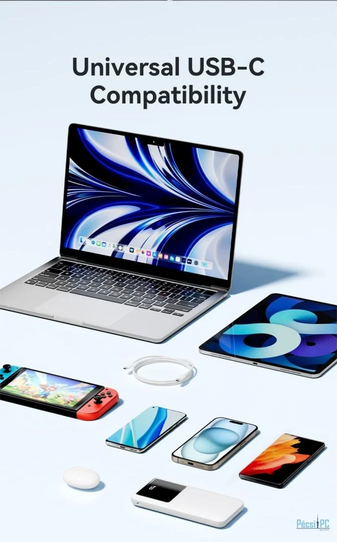 USB kábel, USB-C, USB-C, USB2.0, Male/Male, 1m, White, Töltő és adatkábel