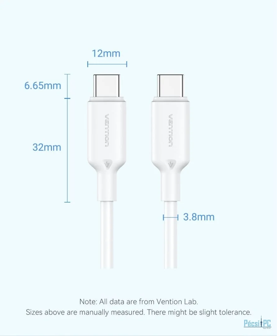 Vention USB 2.0 Type-C Male to Type-C Male 3A Cable 1m White