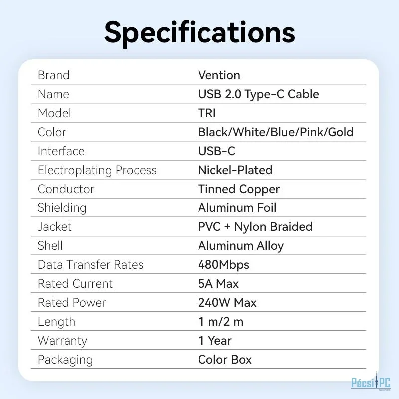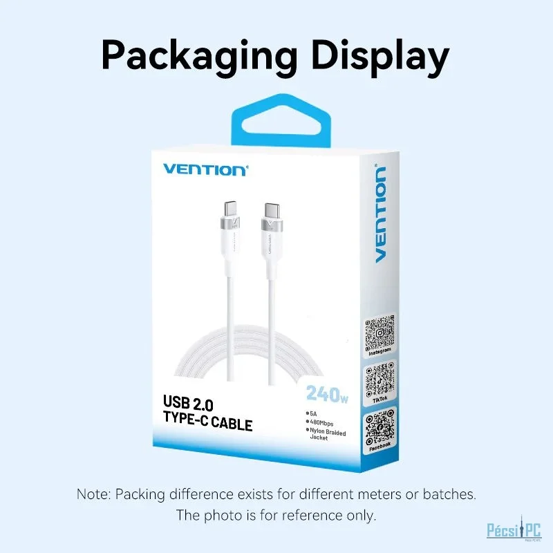 Vention USB 2.0 Type-C Male to Type-C Male 5A Cable 1m White