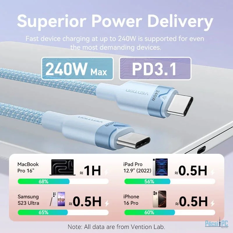 USB kábel, USB-C, USB-C, USB2.0, Male/Male, 1m, White, Töltő és adatkábel, Szövetborítás