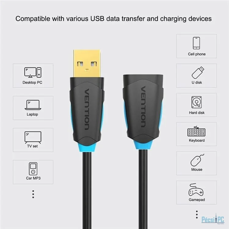 Vention USB-A 2.0/M to USB-A 2.0/F cable 5m Black