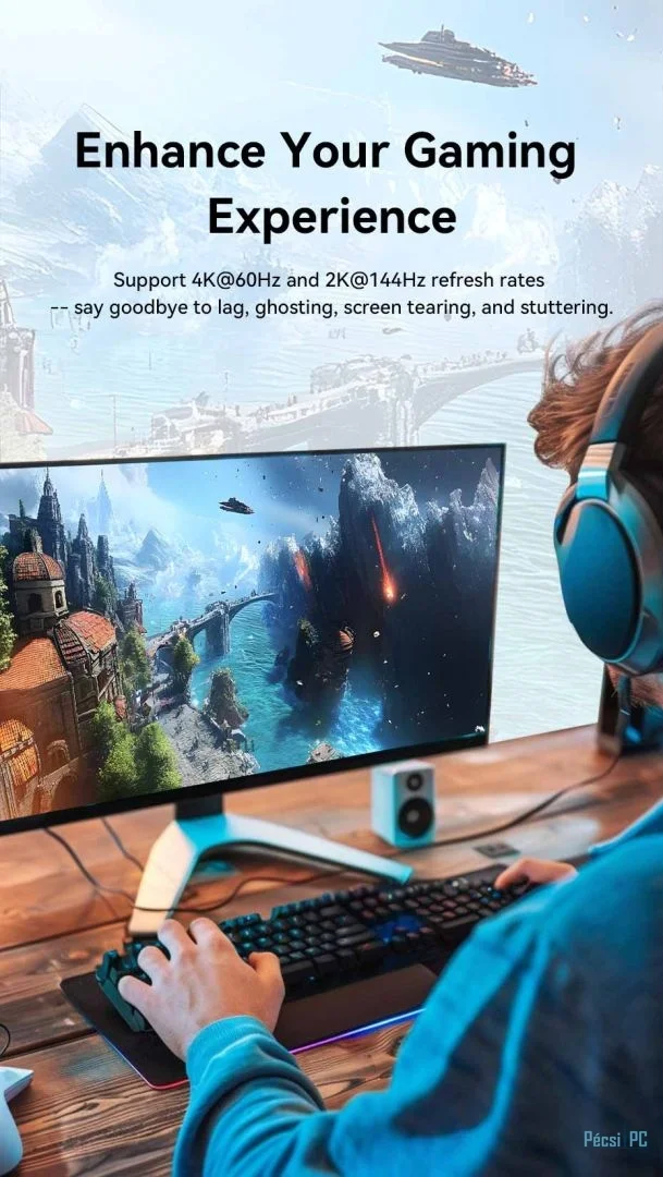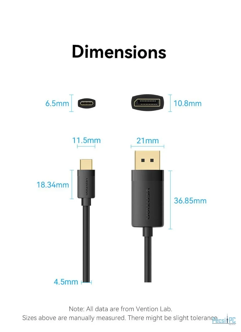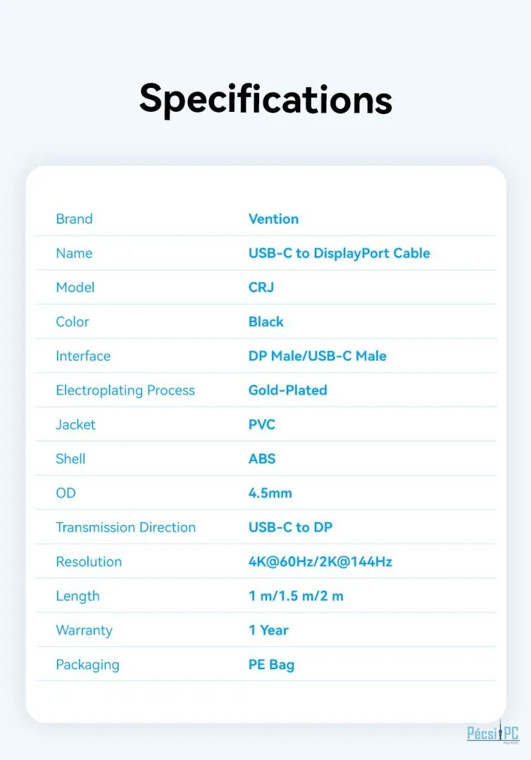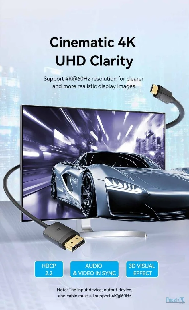 Videó kábel, USB-C, DisplayPort, Ultra HD 4K, Male/Male, 2m, Black