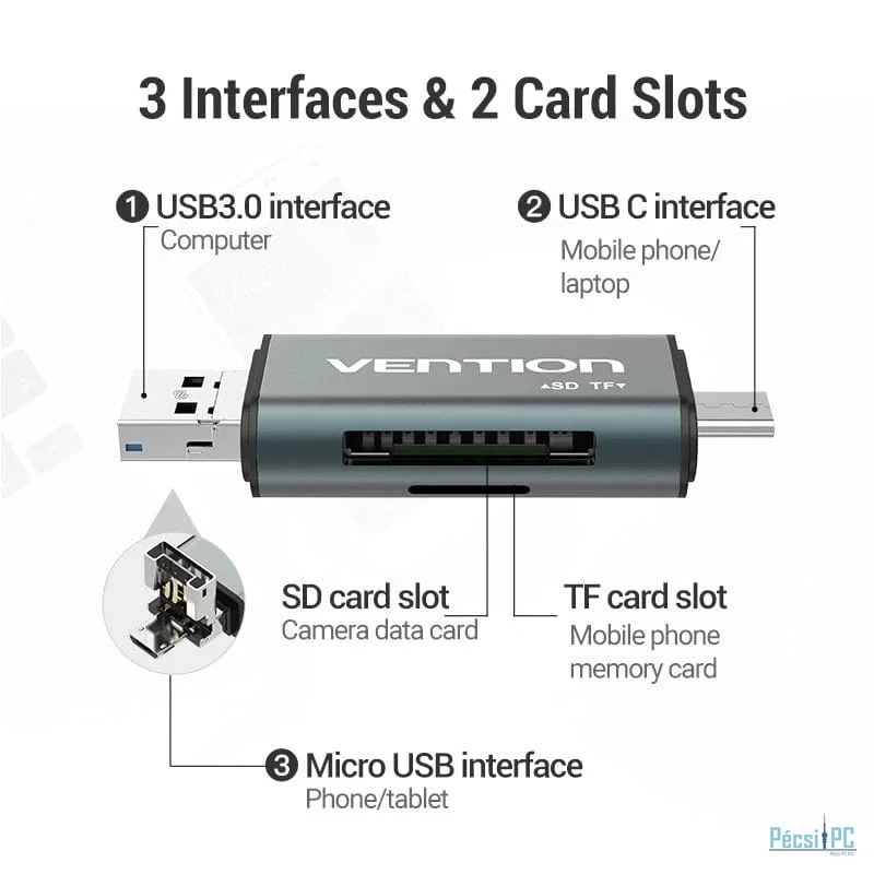 Vention USB3.0 Multi-function Card Reader Grey
