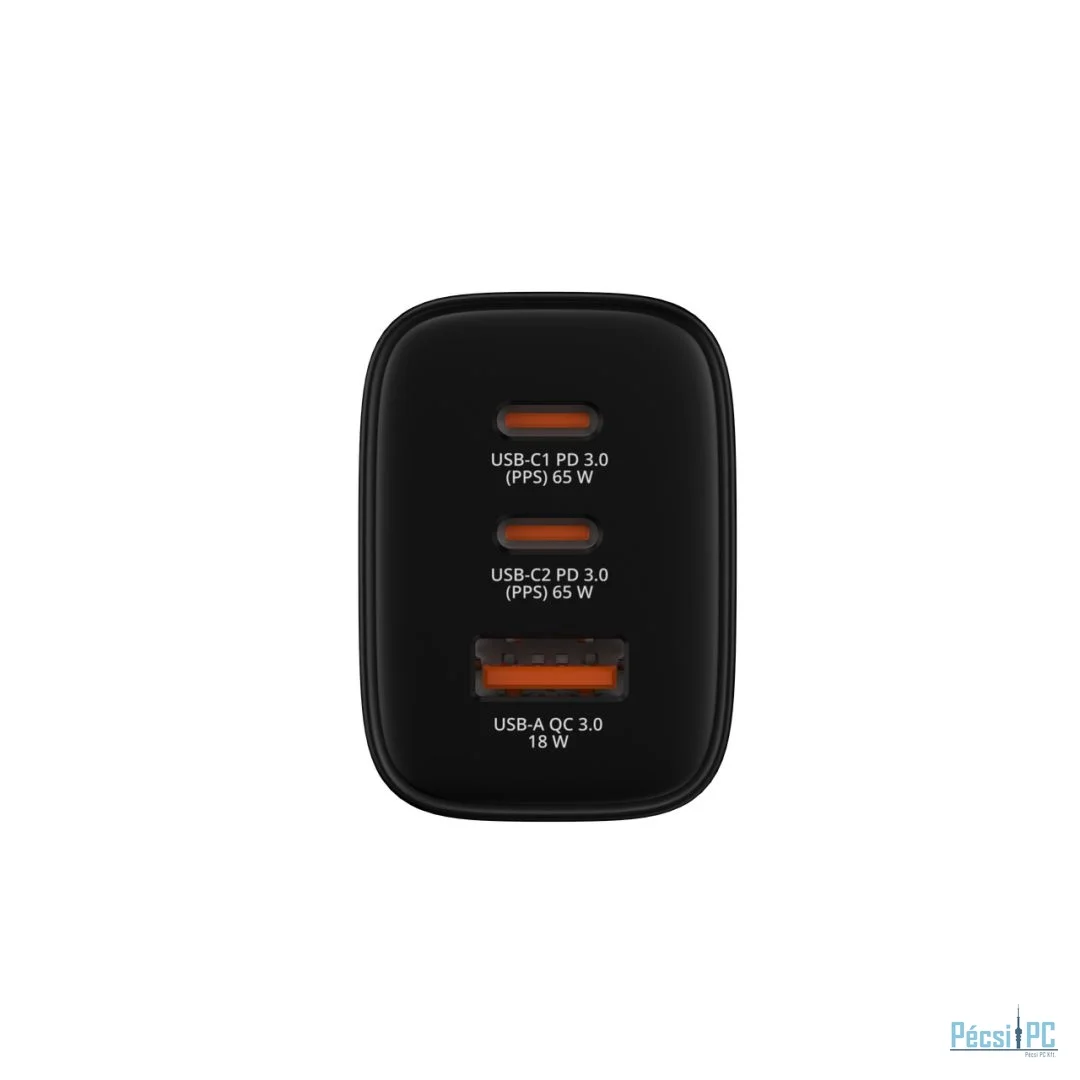Adapter, 1xUSB-A, 2xUSB-C, 5V/9V/12V/15V/20V, 3,25A, 65W, QC, PD, Black