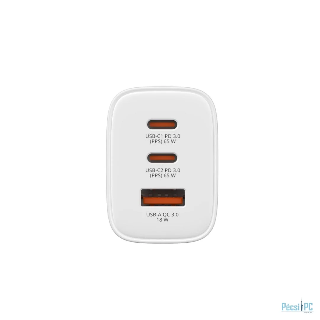Adapter, 1xUSB-A, 2xUSB-C, 5V/9V/12V/15V/20V, 3,25A, 65W, QC, PD, White