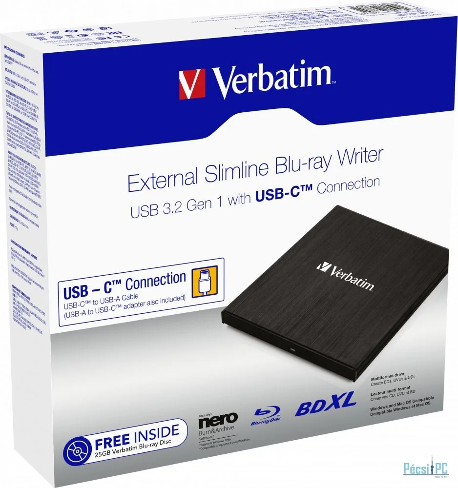 Verbatim External Slimline Blu-ray Writer Black BOX