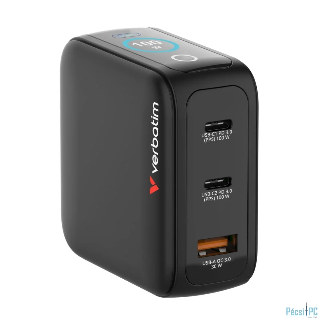 Verbatim Mini GaN Charger with Display 100W 3-Port Black
