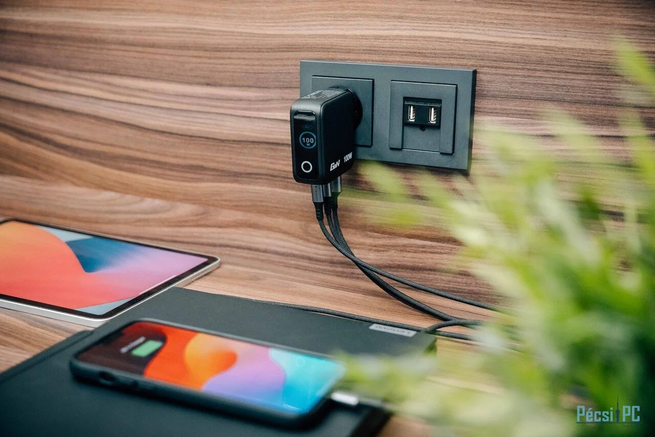 Adapter, 1xUSB-A, 2xUSB-C, 100W, QC, PD, Black