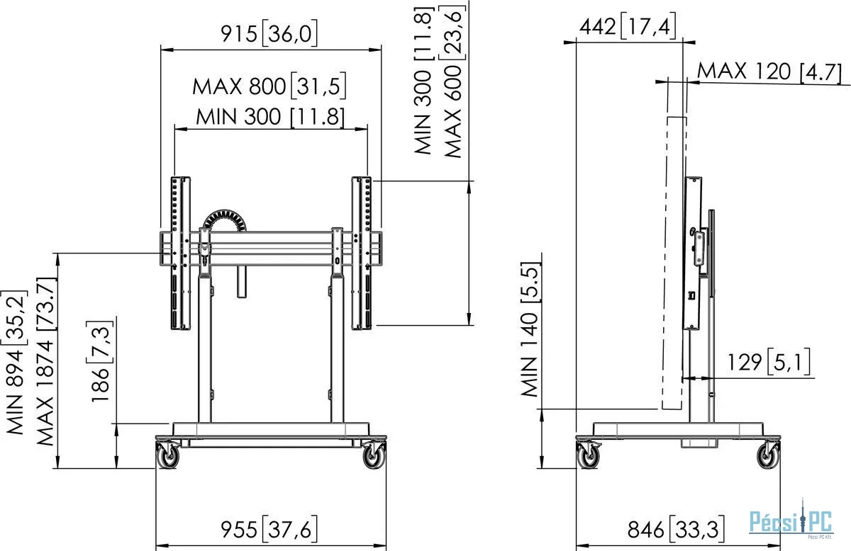 Kijelző, Padlóállvány, Min 55", Max 98"
