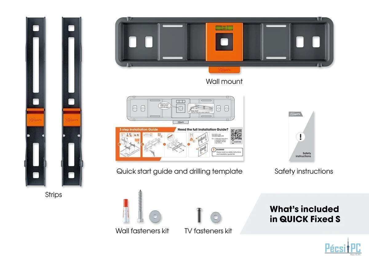 A QUICK TV fali tartóit úgy fejlesztettük ki, hogy a televízió falra szerelése gyors és egyszerű legyen. A QUICK Fixed TV fali tartó felszerelése legfeljebb 20 percet vesz igénybe. Az egyedülálló EasyFIX™ rendszernek köszönhetően mindössze három egyszerű lépésben készen áll.