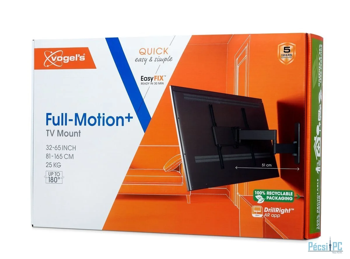 A Vogel''s segítségével biztos lehet benne, hogy értékes televíziója szilárdan és biztonságosan van felszerelve. Minden QUICK Full-Motion+ TV-fali tartó TÜV-tanúsítványt kapott, és a maximális teherbírás háromszorosára tesztelték.