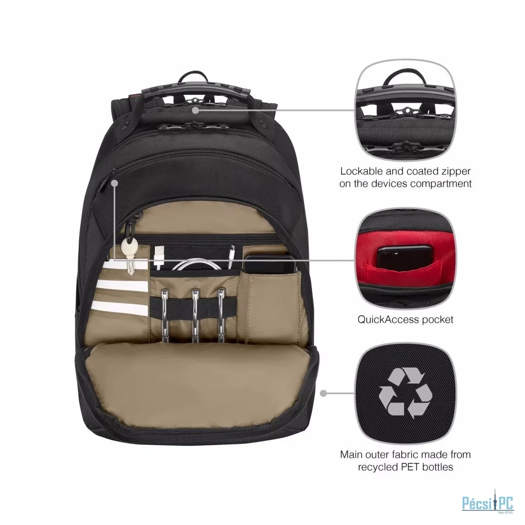 Tegye kényelmesebbé a napi ingázást a Legacy Black Series laptop hátizsákkal. Az újrahasznosított PET-palackokból készült, strapabíró külsővel rendelkező modell az elfoglalt üzletemberek számára készült. A párnázott, zárható, bevonatos cipzárral ellátott Triple Protect rekeszben egy legfeljebb 16" képernyőméretű laptop, egy speciális zsebben pedig egy legfeljebb 10" képernyőméretű táblagép fér el. A kényelemről a szabad légáramlást biztosító hátlap és a párnázott vállpántok gondoskodnak. A QuickAccess zseb ideális tárolórekesz a leggyakrabban használt kiegészítők számára, míg a rejtett biztonsági zseb az értéktárgyak biztonságos tárolását teszi lehetővé. A Pass-Thru fogantyúpánt és a stabilizáló CaseBase az utazást élvezetessé teszi.