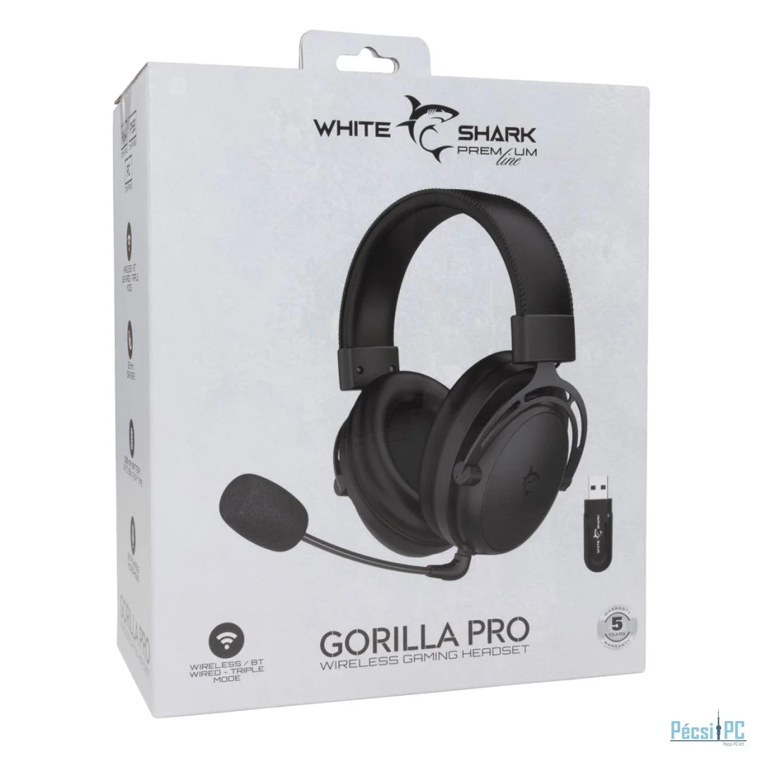 White Shark Gorilla Pro Wireless Bluetooth Gaming Headset Black