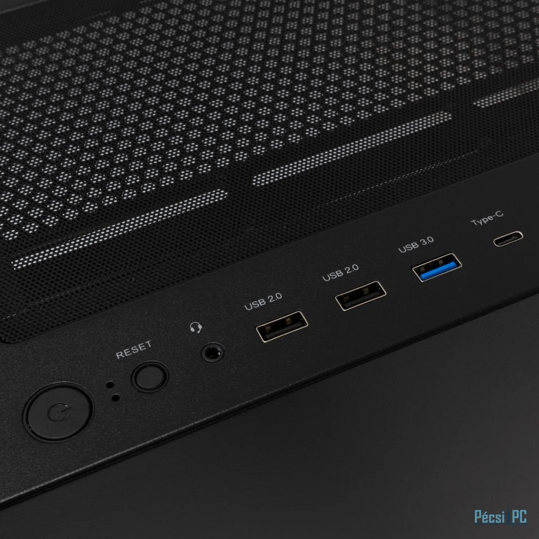 E-ATX, Black, 2x3,5", 3x2,5", 2xUSB2.0, 1xUSB3.0, 1xUSB Type-C, Audio, Táp nélkül, 485x400x215mm, Ventilátor:4x12cm, Tempered glass window, Gamer