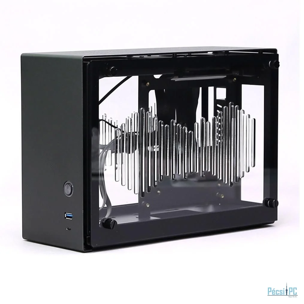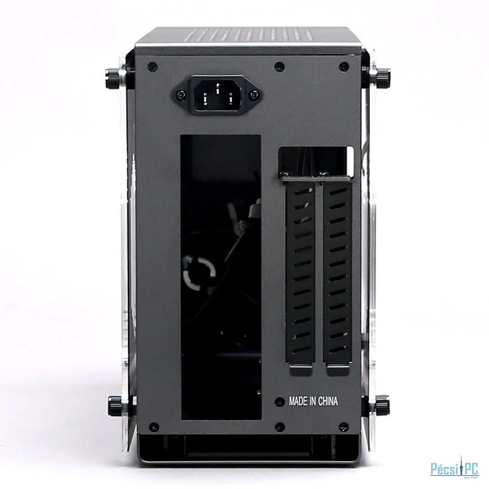 Mini-ITX, Silver, 2x2,5", 1xUSB3.0, 1xUSB Type-C, Audio, Táp nélkül, 328x150x235mm, Ventilátor:1x8cm, Tempered glass window